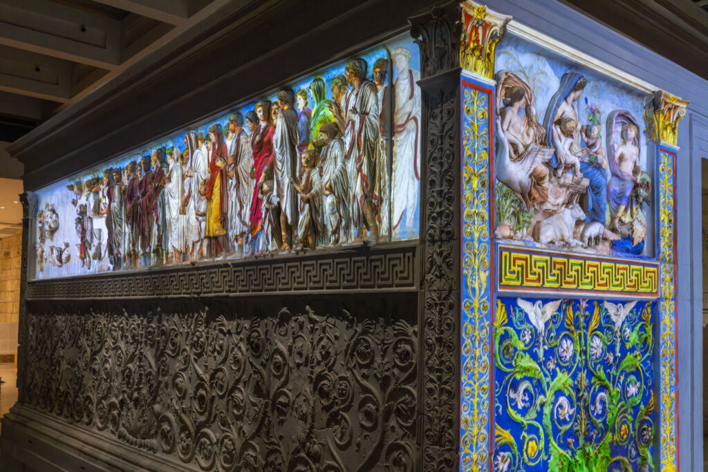 “L’Ara si rivela” è un nuovo coinvolgente racconto della storia dell’Ara Pacis: utilizzando proiezioni di luce saranno ricreati i colori originari del monumento, con effetto fortemente immersivo e realistico della policromia originale. Grazie a una narrazione emozionante e coinvolgente, ricca di informazioni e accompagnata da musiche e suggestioni sonore, il visitatore sarà accompagnato nella scoperta dell’Ara Pacis.